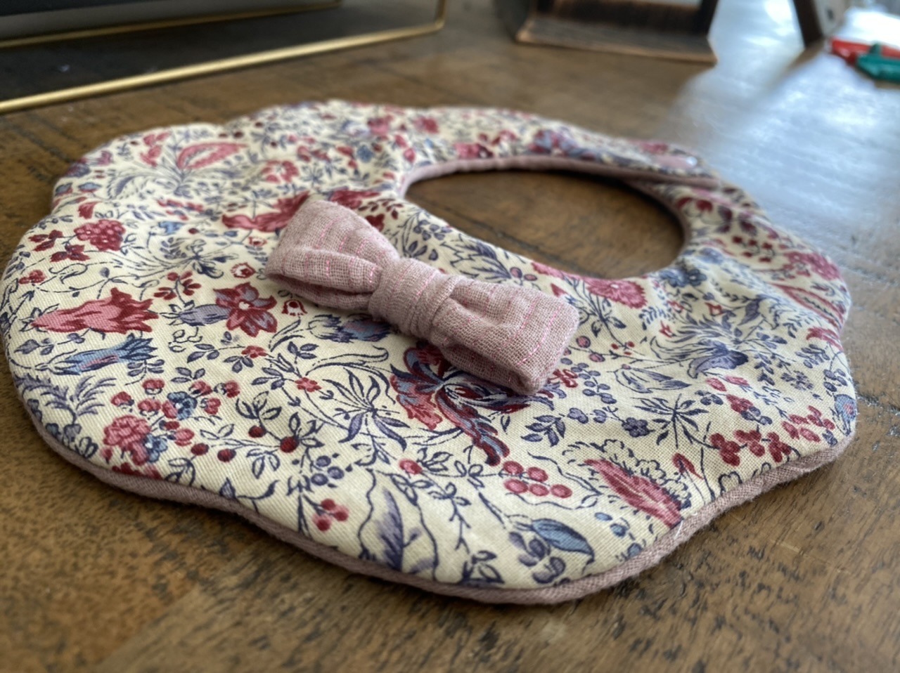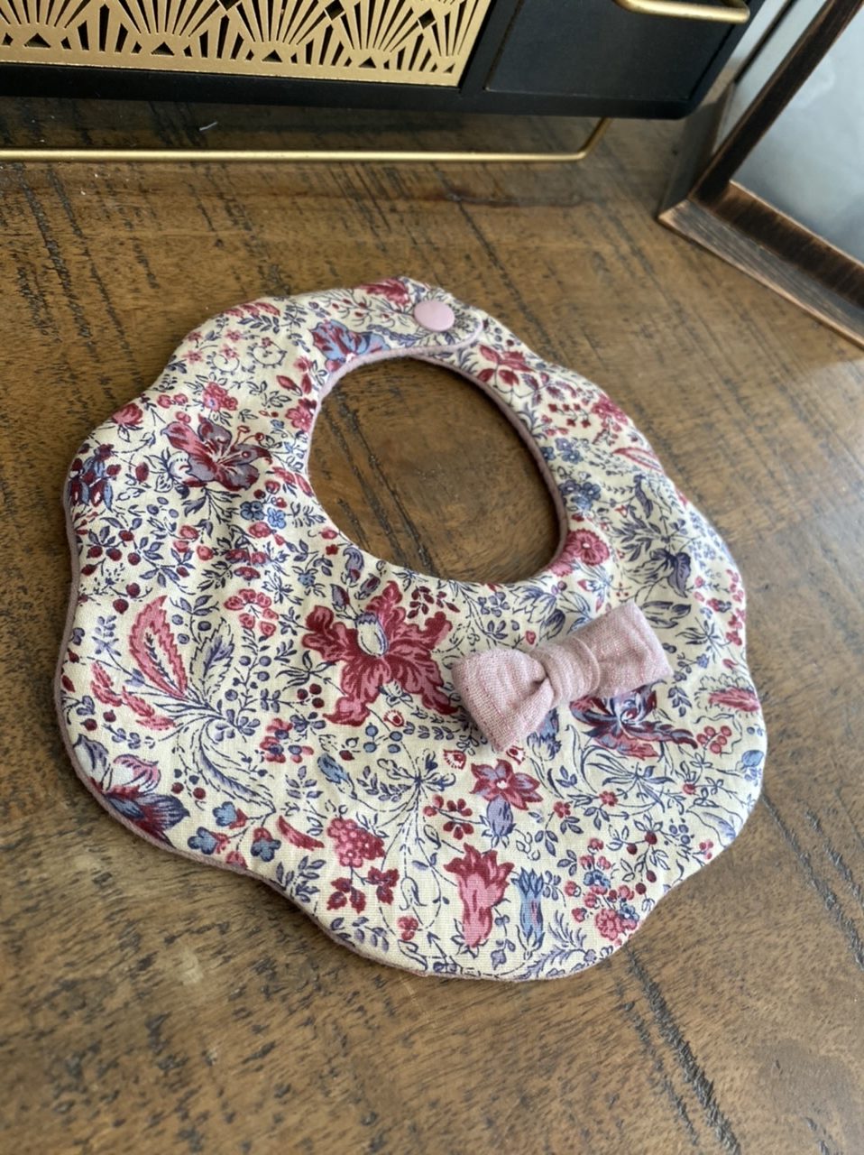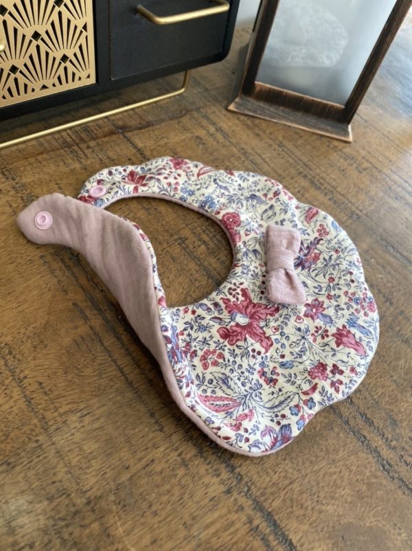 Bavoir bébé FLEUR en coton imprimé et gaze,
