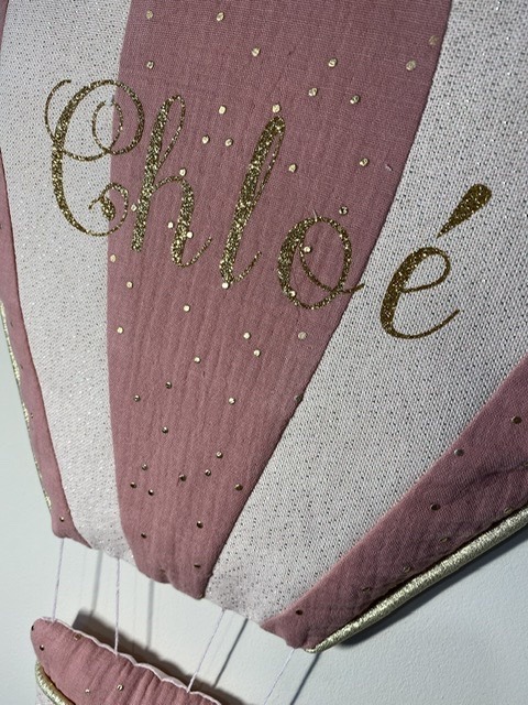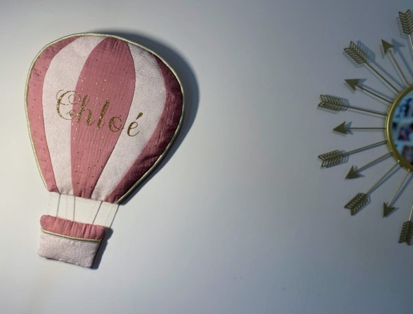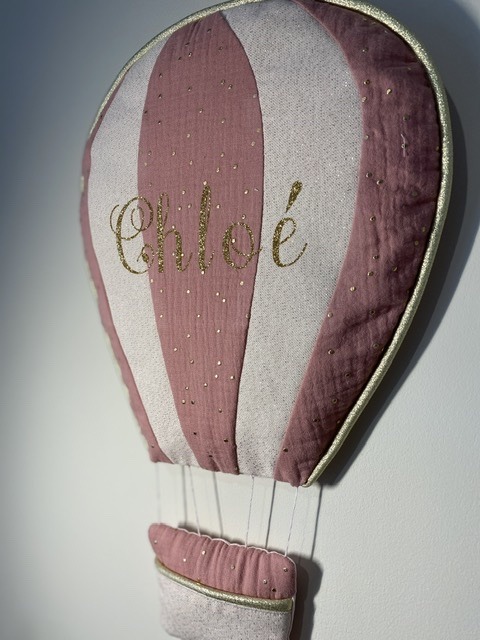 Montgolfière en tissu 100% coton OEKO TEX, garnie de ouate hypoallergenique 100% polyester.