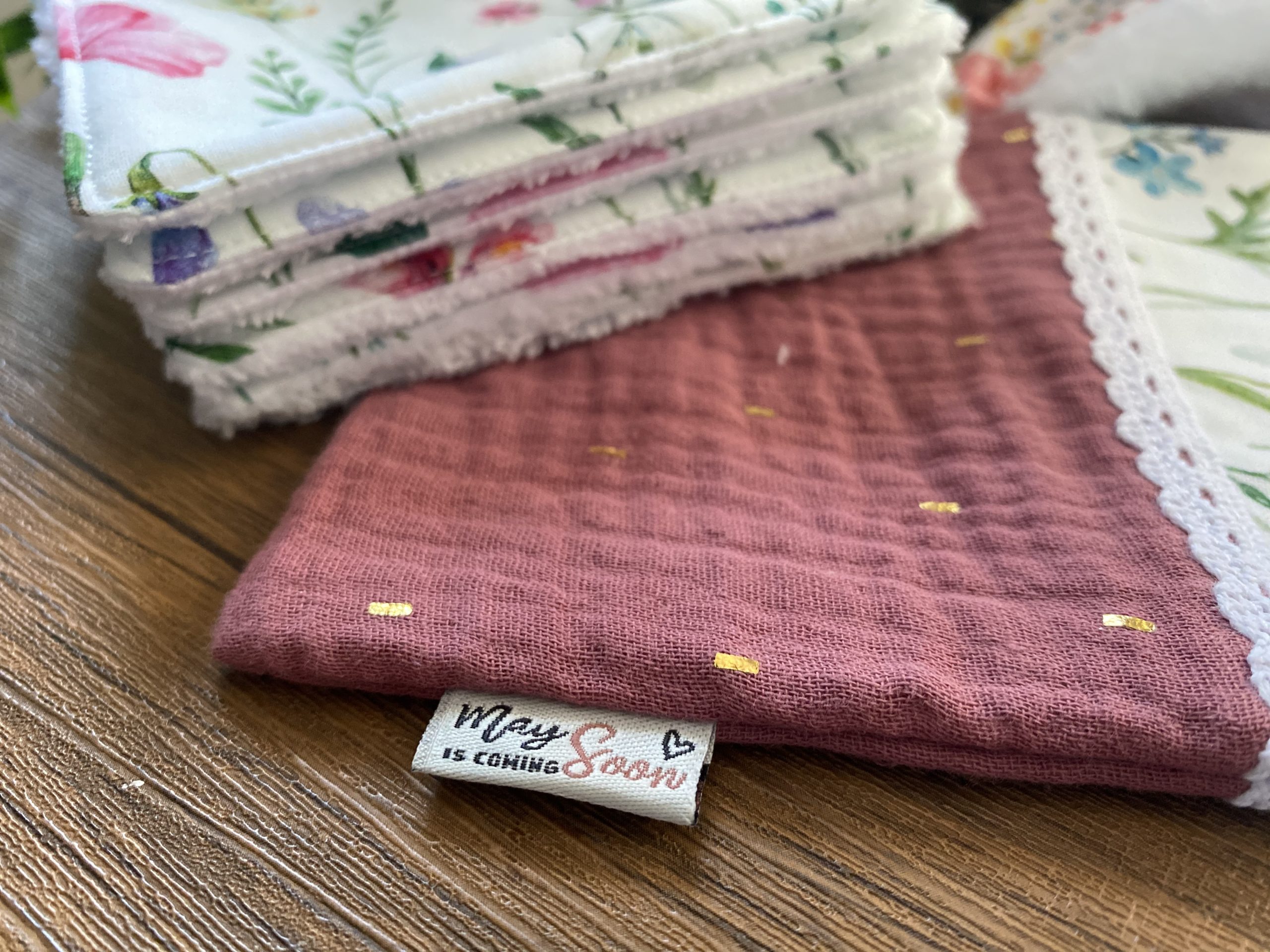 Lingettes en éponge de bambou d’une douceur incroyable, doublées de coton.