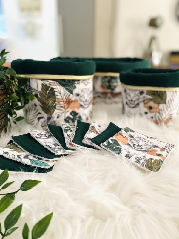 Panier de rangement molletonné, parfait pour y ranger les cotons lavables, et tous les produits nécessaires au soin de bébé.