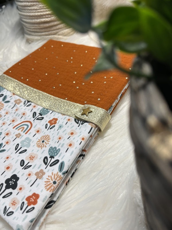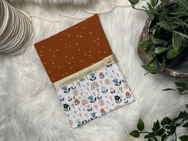 Joli protège pour Carnet de Santé, en coton imprimé et double gaze à pois dorés !