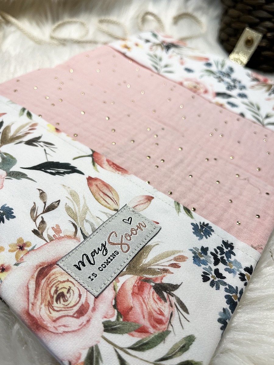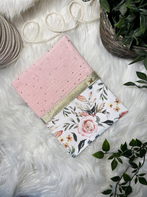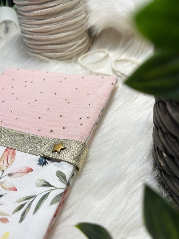 Joli protège pour Carnet de Santé, en coton imprimé et double gaze à pois dorés !