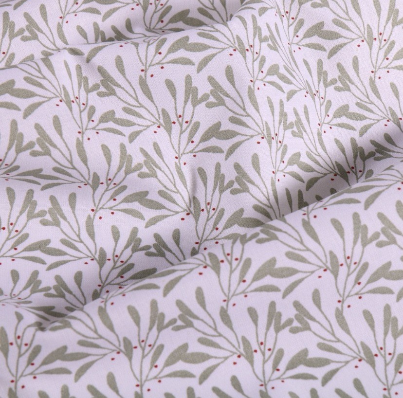 Tissu Polka Forest Bleu et double Gaze de coton beige.