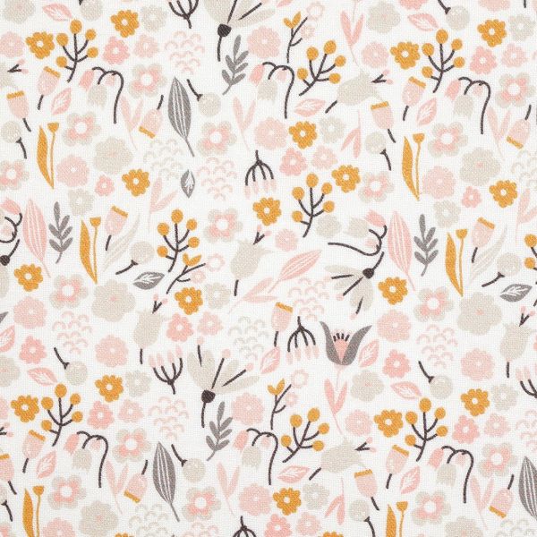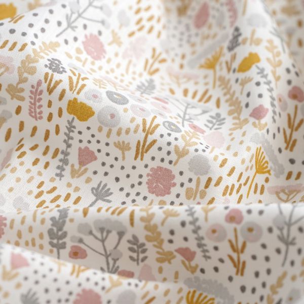Tissu micro fleurs pastel rose et jaunee