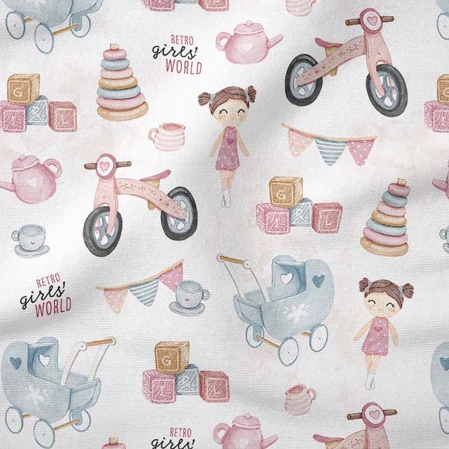 Tissu jouets anciens Fille (gros motif)