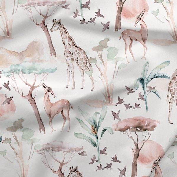 Un tissu tout mignon au motif savane aquarelle… comme je les aime !